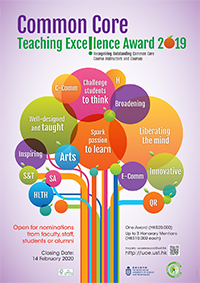 We are pleased to announce that the Common Core Teaching Excellence Award 2019 is now open for nomination. Any instructor or team of instructors who has designed and/or taught a common core course or common core courses between