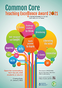 We are pleased to announce that the Common Core Teaching Excellence Award 2021 is now open for nomination. Any instructor or team of instructors who has designed and/or taught a common core course or common core courses between