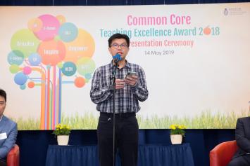 In both his outlook and delivery, Thomas serves as an outstanding example of how to work toward and attain Common Core aspirations: to broaden students’ horizons, to a passion for learning and to empower their development as compassionate, responsible and ethical citizens. Thus, the Selection Committee has great pleasure in recommending Professor Thomas Hu for the 2018 Common Core Teaching Excellence Award.